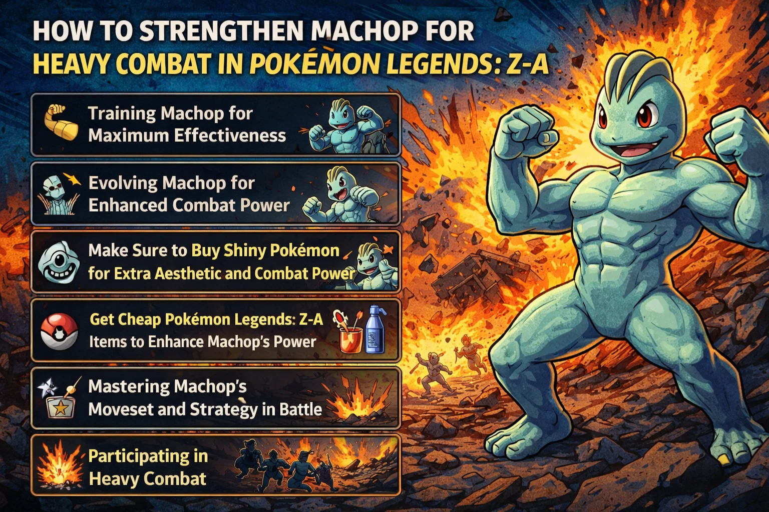 Training Machop for heavy combat in Pokémon Legends: Z-A is an exciting challenge that rewards patience, strategic planning, and resource management. Whether you’re looking to enhance your Machop’s offensive capabilities or seeking the best items and shiny Pokémon to maximize its power, the journey will help you become a formidable trainer. Make sure to buy shiny Pokémon for rare and powerful additions to your team, and don’t overlook the importance of acquiring cheap Pokémon Legends: Z-A items to help boost your Pokémon’s strength without draining your resources.